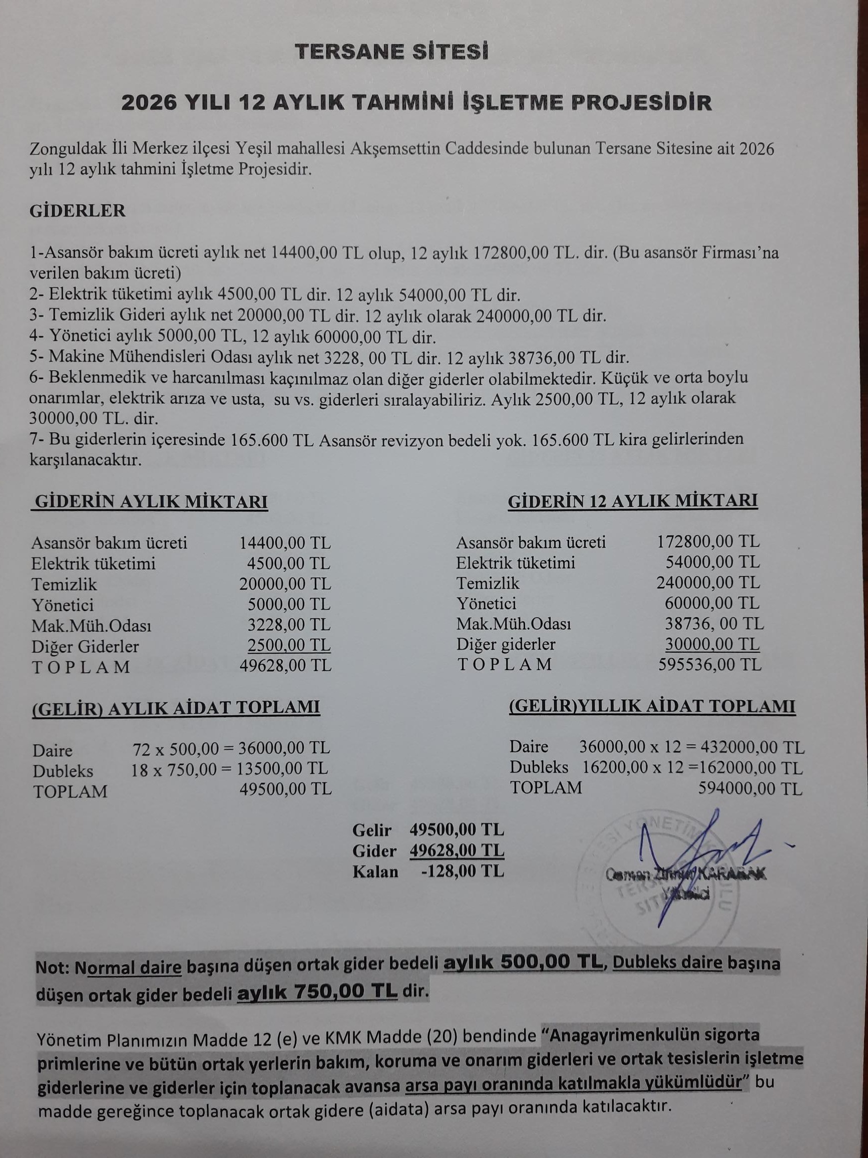 Not: 1 Şubat 2018’den itibaren daire başına düşen ortak gider bedeli aylık 50 TL dir.